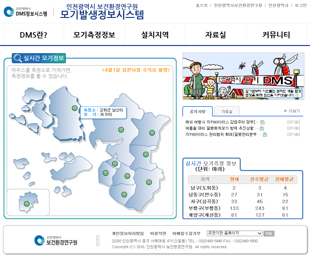 - 실시간 모기발생정보 모니터링 시스템 (DMS, Digital Mosquito Monitoring System)